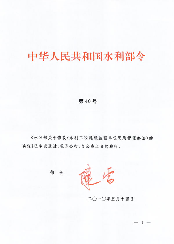 水利部關于修改《水利工程建設監(jiān)理單位資質管理辦法》的決定