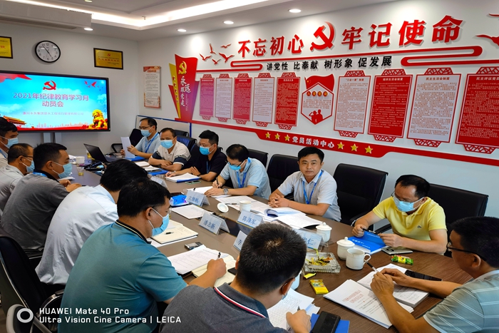 會議傳達了《惠州市水務集團有限公司2021年紀律教育學習月活動實施方案》精神,聽取了副總經(jīng)理陳澤軍匯報公司上半年紀檢監(jiān)察工作開展情況,并對下半年工作計劃提出要求和建議。