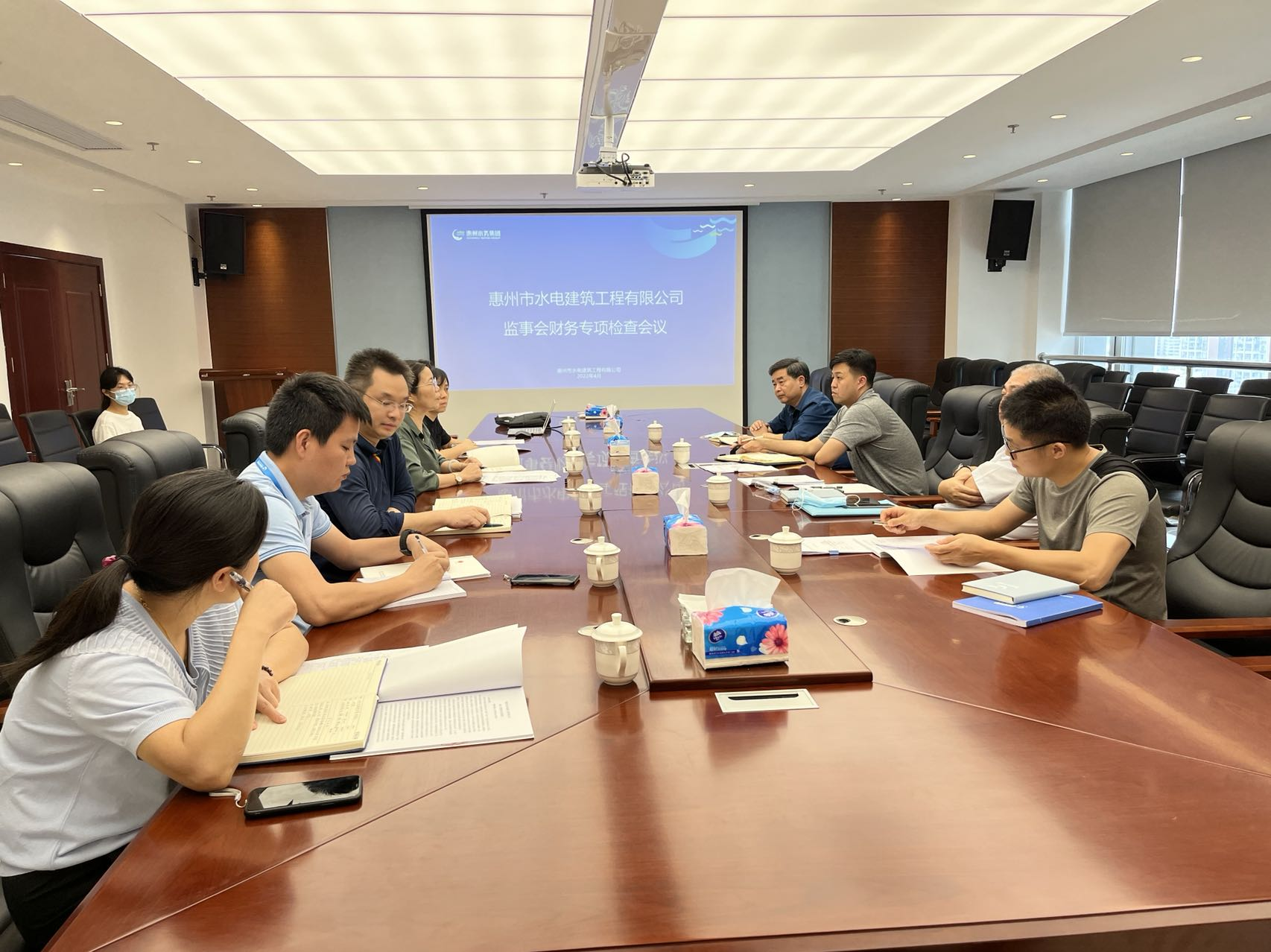 4月24日下午,惠州市水電建筑工程有限公司第三屆監(jiān)事會第三次會議暨財務專項檢查會議在水務調度中心1419室召開。會議由監(jiān)事會主席吳文輝主持,集團委派監(jiān)事,職工監(jiān)事,監(jiān)事會辦公室、財務部相關負責人,會計師事務所相關人員共12人參加了會議。