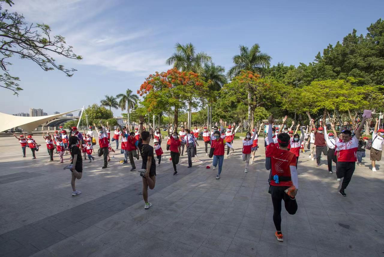 熱身活動過后,隨著響亮的笛聲,參加綠色撿跑的志愿者們,攜帶手套、垃圾袋等裝備,從東江沙公園出發(fā),一邊跑步一邊順手清理散落在道路旁、綠道、綠化帶中的垃圾。志愿者們分批對路邊的游客進(jìn)行綠色出行、垃圾分類等環(huán)保知識的宣傳,用行動踐行“垃圾不落地,惠州更美麗”的理念。