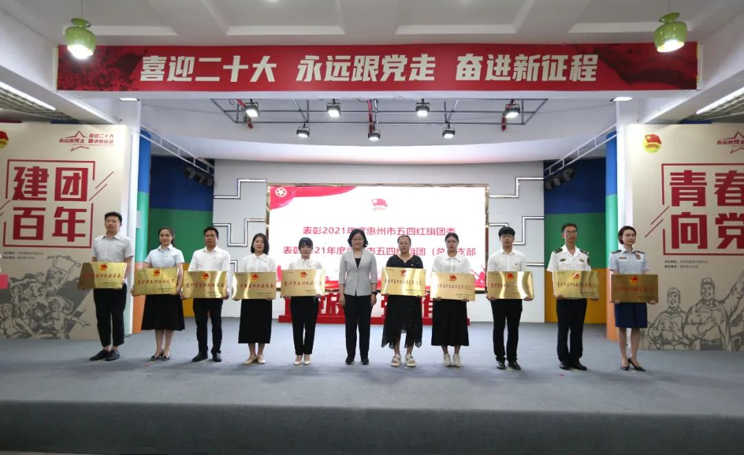 會議表彰了2021年度惠州市共青團(tuán)“兩紅兩優(yōu)”,市供水有限公司團(tuán)委被授予2021年度“惠州市五四紅旗團(tuán)委”榮譽(yù)稱號,楊朝暉為市五四紅旗團(tuán)委頒發(fā)牌匾。